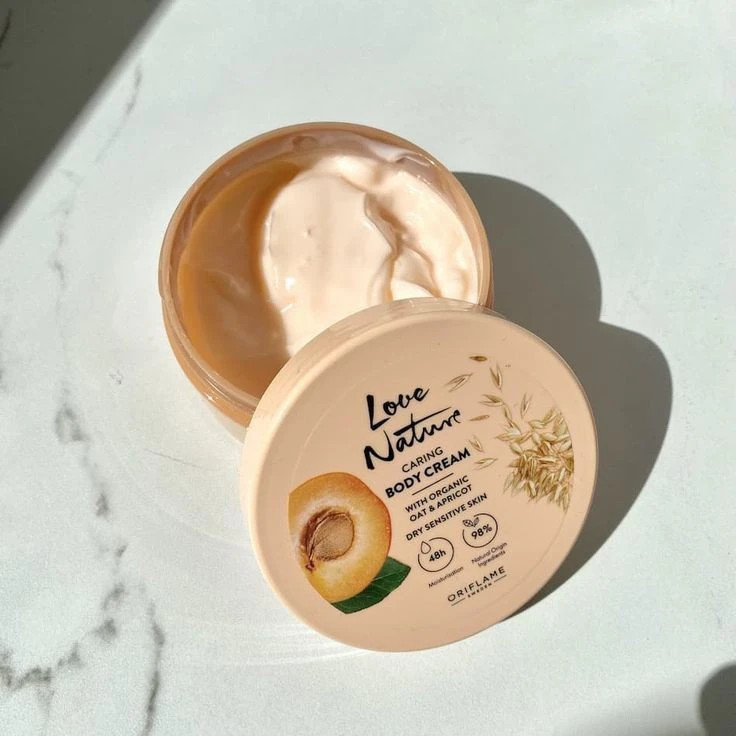 پوست خود را با یک کرم بدن غنی که با عصاره های طبیعی ارگانیک جو و زردآلو آغشته شده و به شدت مرطوب و آبرسانی می کند تا ۴۸ ساعت رطوبت رسانی می کنه